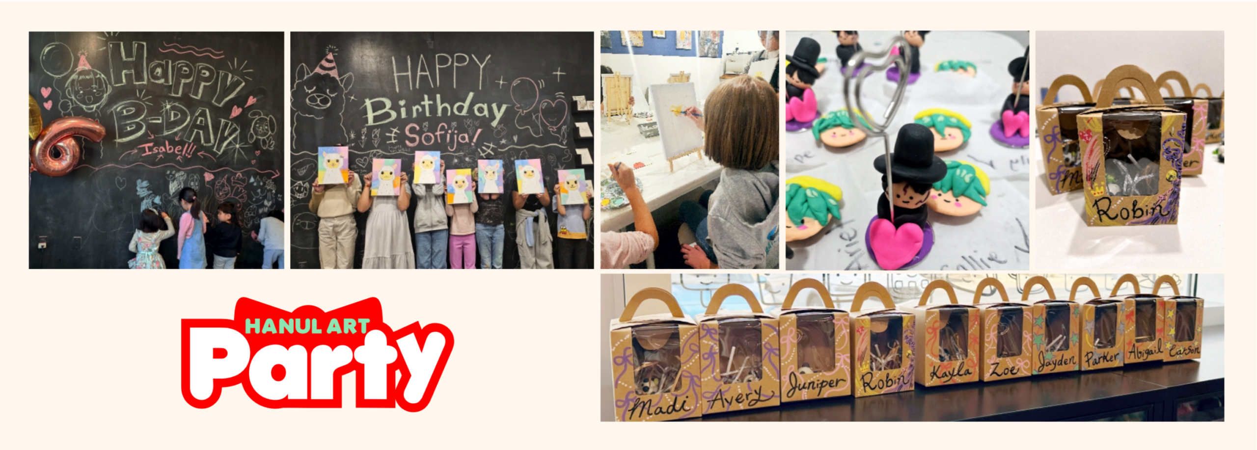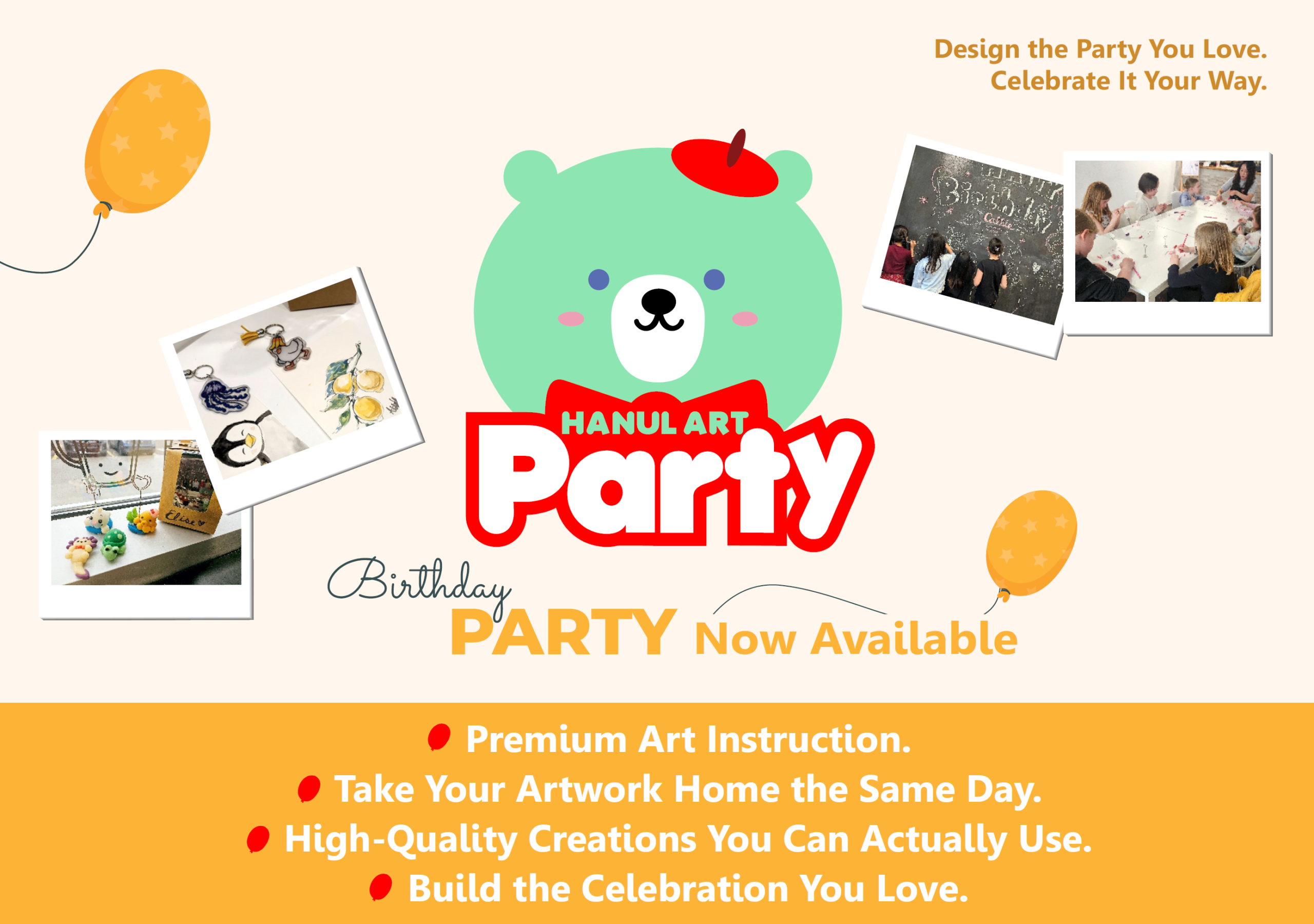 Hanul Art Birthday Party Package (2 Hours) Celebrate your child’s special day with a creative and memorable art party at Hanul Art School.